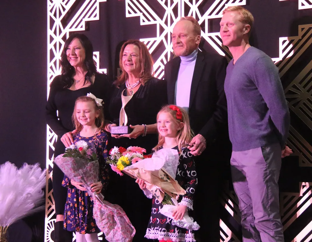 Two of DeLaney’s granddaughters — Joslyn, 9, and Raelyn, 6 — were on stage with her as she accepted the award.